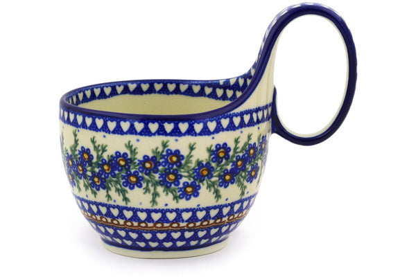 This Mother's Love 16 oz Bowl with Loop-Handle was handmade and hand decorated in Boleslawiec, Poland by skilled artisans according to old traditional methods. This is a Polish pottery Signature Unikat, which means that it has been hand painted with both sponges and brushes and it is signed by the artist who painted it. Unikat pieces are the most intricate works of art. Larger Unikat items take hours of very careful work to finish. This Polish stoneware is microwave, dishwasher, freezer, and oven safe up to 480°F. It does not contain lead or cadmium. It is part of the Mother's Love Collection.