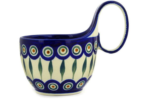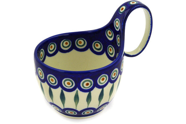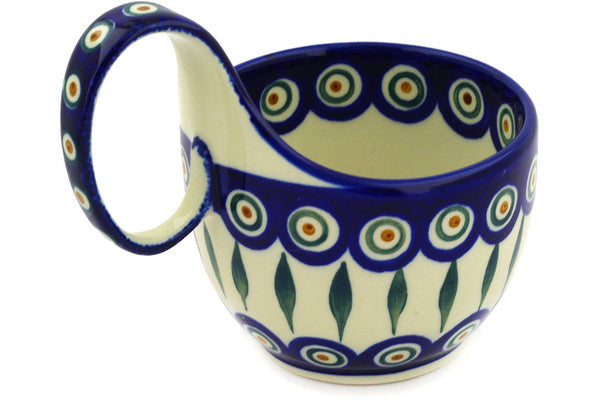 Bowl with Loop-Handle 16 oz Peacock Leaves Theme