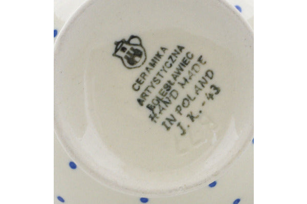 This Blue Zinnia 14 oz Brewing Mug was handmade and hand decorated in Boleslawiec, Poland by skilled artisans according to old traditional methods. This Polish stoneware is microwave, dishwasher, freezer, and oven safe up to 480°F. It does not contain lead or cadmium. It is part of the Blue Zinnia Collection.