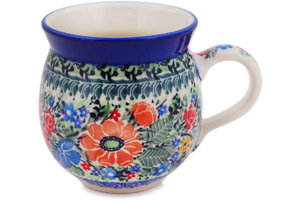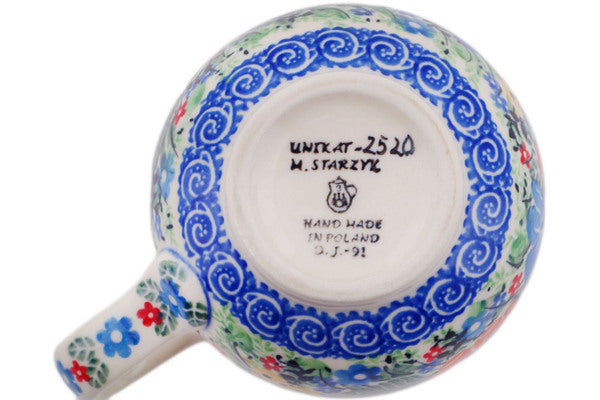 This Garden Of Happiness 12oz Bubble Mug was handmade and hand decorated in Boleslawiec, Poland by skilled artisans according to old traditional methods. This is a Polish pottery Signature Unikat, which means that it has been hand painted with both sponges and brushes and it is signed by the artist who painted it. Unikat pieces are the most intricate works of art. Larger Unikat items take hours of very careful work to finish. This Polish stoneware is microwave, dishwasher, freezer, and oven safe up to 480°F. It does not contain lead or cadmium. It is part of the Garden Of Happiness Collection.