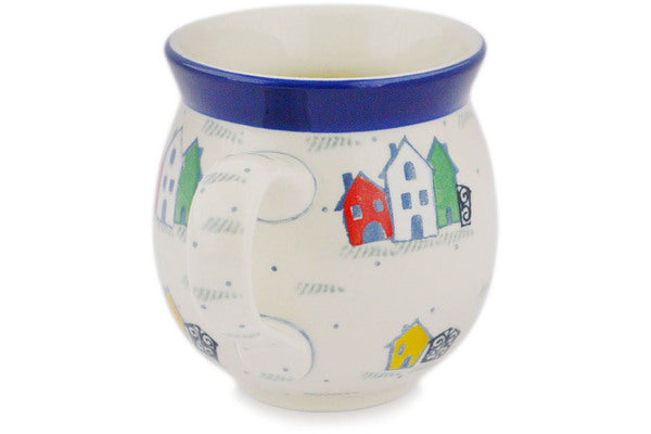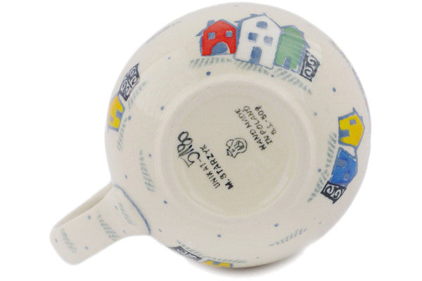 This Happy Neighborhood 12oz Bubble Mug was handmade and hand decorated in Boleslawiec, Poland by skilled artisans according to old traditional methods. This is a Polish pottery Signature Unikat, which means that it has been hand painted with both sponges and brushes and it is signed by the artist who painted it. Unikat pieces are the most intricate works of art. Larger Unikat items take hours of very careful work to finish. This Polish stoneware is microwave, dishwasher, freezer, and oven safe up to 480°F. It does not contain lead or cadmium. It is part of the Happy Neighborhood Collection.