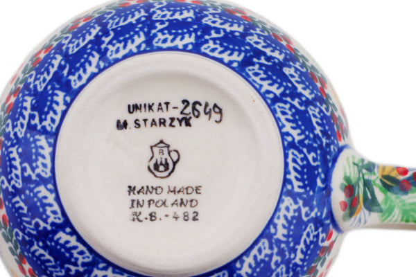 This Red Flock 12oz Bubble Mug was handmade and hand decorated in Boleslawiec, Poland by skilled artisans according to old traditional methods. This is a Polish pottery Signature Unikat, which means that it has been hand painted with both sponges and brushes and it is signed by the artist who painted it. Unikat pieces are the most intricate works of art. Larger Unikat items take hours of very careful work to finish. This Polish stoneware is microwave, dishwasher, freezer, and oven safe up to 480°F. It does not contain lead or cadmium. It is part of the Red Flock Collection.