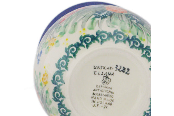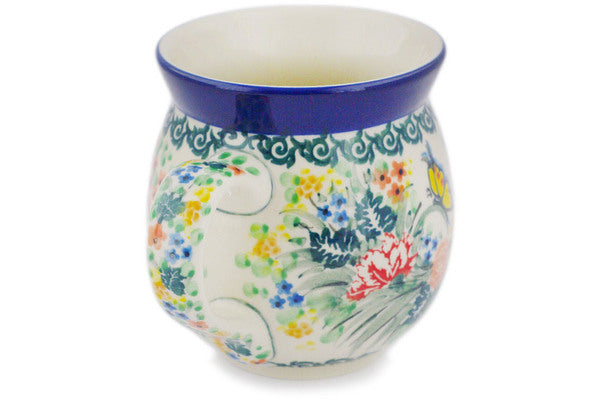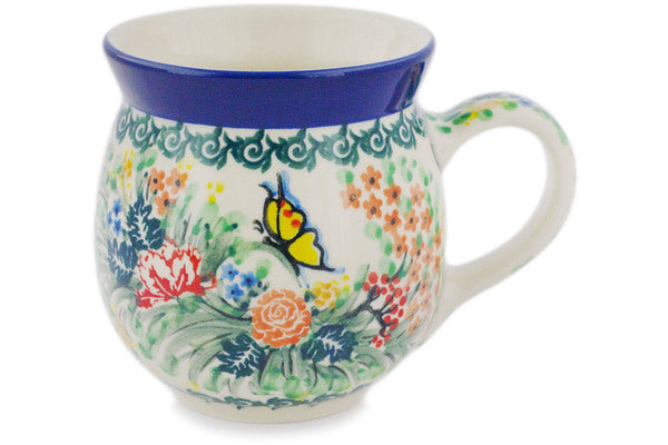 This Spring Butterfly 16 oz Bubble Mug was handmade and hand decorated in Boleslawiec, Poland by skilled artisans according to old traditional methods. This is a Polish pottery Signature Unikat, which means that it has been hand painted with both sponges and brushes and it is signed by the artist who painted it. Unikat pieces are the most intricate works of art. Larger Unikat items take hours of very careful work to finish. This Polish stoneware is microwave, dishwasher, freezer, and oven safe up to 480°F. It does not contain lead or cadmium. It is part of the Spring Butterfly Collection.