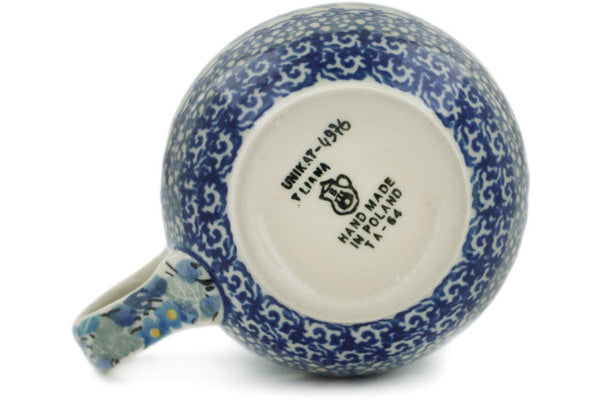 This Wedding Bouquet 8 oz Bubble Mug was handmade and hand decorated in Boleslawiec, Poland by skilled artisans according to old traditional methods. This is a Polish pottery Signature Unikat, which means that it has been hand painted with both sponges and brushes and it is signed by the artist who painted it. Unikat pieces are the most intricate works of art. Larger Unikat items take hours of very careful work to finish. This Polish stoneware is microwave, dishwasher, freezer, and oven safe up to 480°F. It does not contain lead or cadmium. It is part of the Wedding Bouquet Collection.