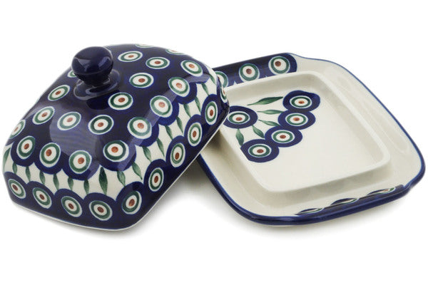 Butter Dish 7" Peacock Leaves Theme