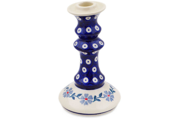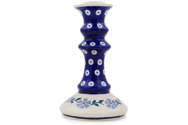 Candle Holder 7" Peacock Forget-Me-Not Theme