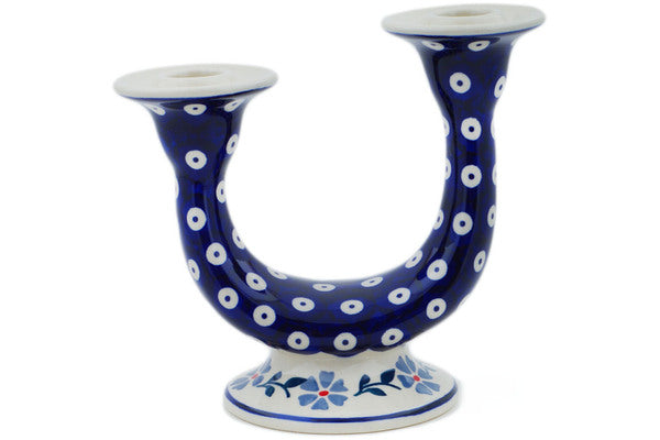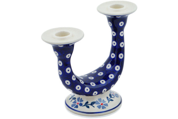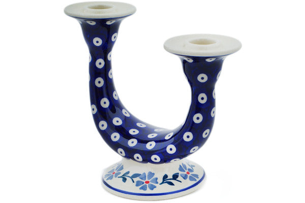 Candle Holder 7" Peacock Forget-Me-Not Theme