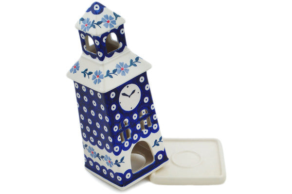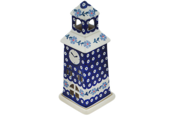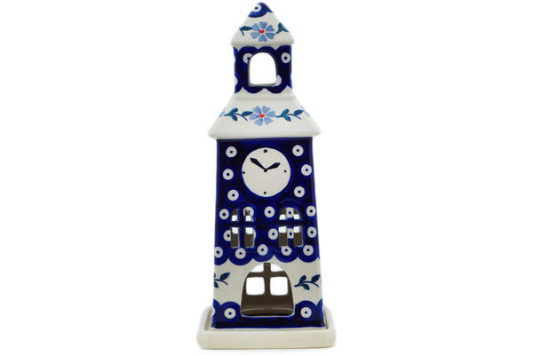 Chapel Candle Holder 8" Peacock Forget-Me-Not Theme