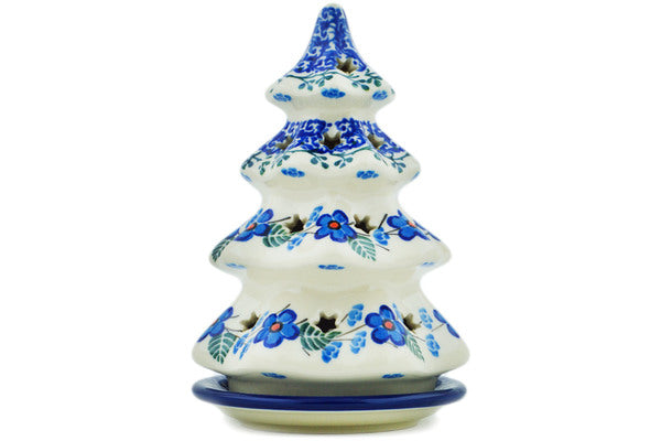 This Blue Blossom 6" Christmas Tree Candle Holder was handmade and hand decorated in Boleslawiec, Poland by skilled artisans according to old traditional methods. This Polish stoneware is microwave, dishwasher, freezer, and oven safe up to 480°F. It does not contain lead or cadmium. It is part of the Blue Blossom Collection.