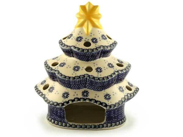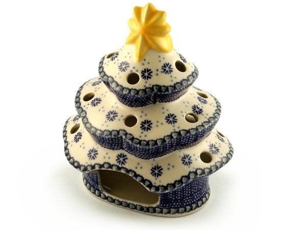 Christmas Tree Candle Holder 7" Falling Snowflakes Theme