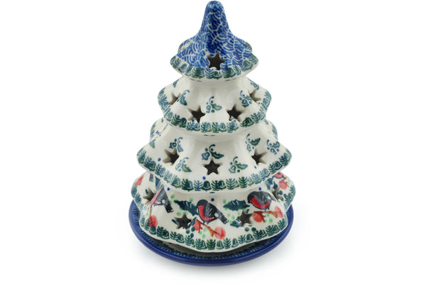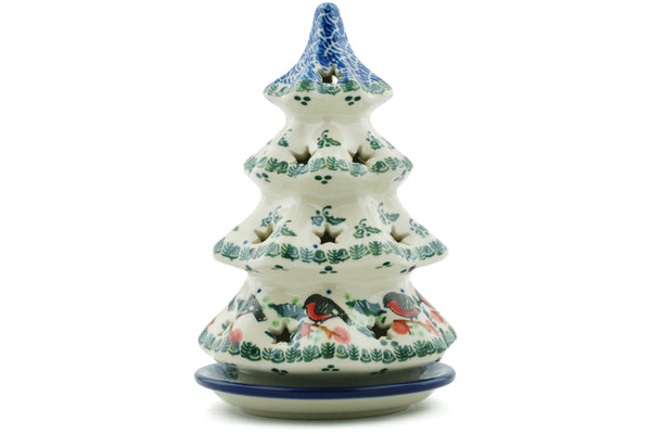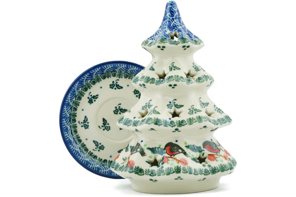 Christmas Tree Candle Holder 7" Holly Robin Theme
