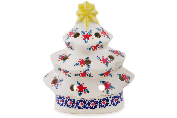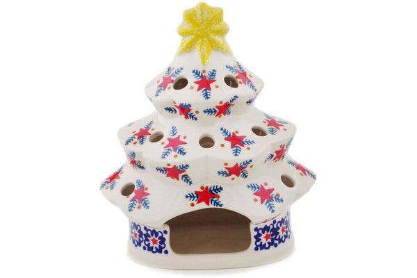 Christmas Tree Candle Holder 7" Starry Wreath Theme
