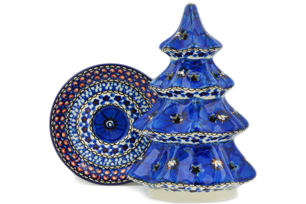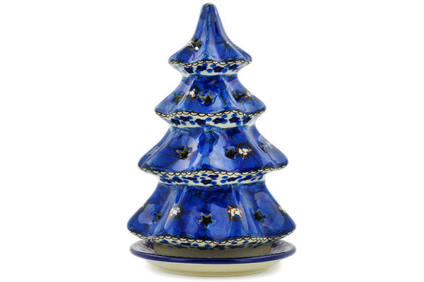 Christmas Tree Candle Holder 8" Cobalt Poppies Theme UNIKAT