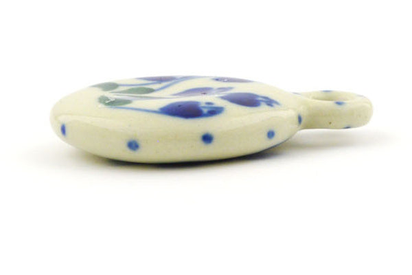 This Bleeding Heart Peacock 2" Circle Pendant was handmade and hand decorated in Boleslawiec, Poland by skilled artisans according to old traditional methods. This Polish stoneware is microwave, dishwasher, freezer, and oven safe up to 480°F. It does not contain lead or cadmium. It is part of the Bleeding Heart Peacock Collection.