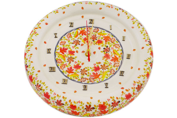 This Change Of The Season 12" Clock was handmade and hand decorated in Boleslawiec, Poland by skilled artisans according to old traditional methods. This Polish stoneware is microwave, dishwasher, freezer, and oven safe up to 480°F. It does not contain lead or cadmium. It is part of the Change Of The Season Collection.
