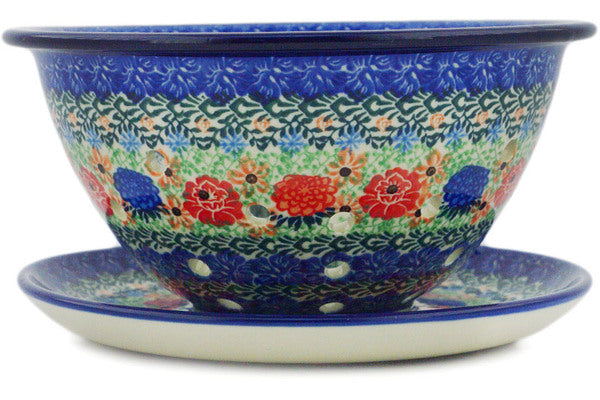 Colander with Plate 8" Hummingbird Bouquet Theme UNIKAT
