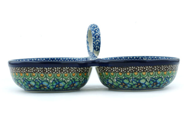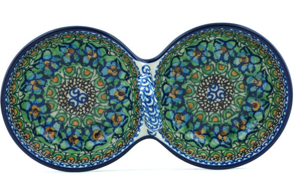 This Mardi Gras 10" Condiment Dish was handmade and hand decorated in Boleslawiec, Poland by skilled artisans according to old traditional methods. This is a Polish pottery Signature Unikat, which means that it has been hand painted with both sponges and brushes and it is signed by the artist who painted it. Unikat pieces are the most intricate works of art. Larger Unikat items take hours of very careful work to finish. This Polish stoneware is microwave, dishwasher, freezer, and oven safe up to 480°F. It does not contain lead or cadmium. It is part of the Mardi Gras Collection.