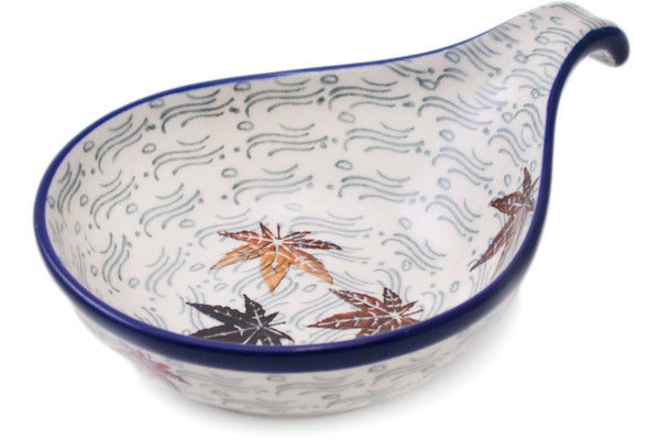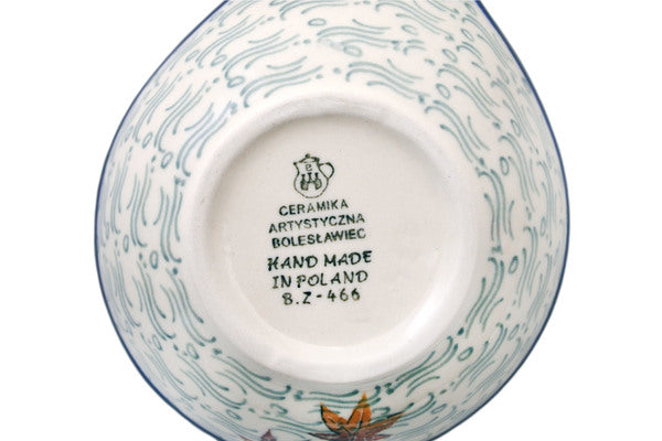 This Autumn Breeze 7" Condiment Dish was handmade and hand decorated in Boleslawiec, Poland by skilled artisans according to old traditional methods. This Polish stoneware is microwave, dishwasher, freezer, and oven safe up to 480°F. It does not contain lead or cadmium. It is part of the Autumn Breeze Collection.