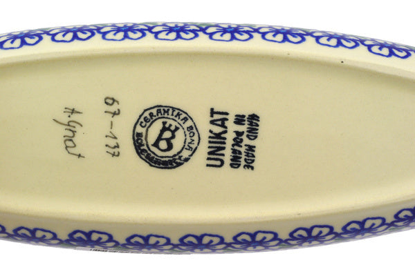 This Fields Of Glory 9" Corn Tray was handmade and hand decorated in Boleslawiec, Poland by skilled artisans according to old traditional methods. This Polish stoneware is microwave, dishwasher, freezer, and oven safe up to 480°F. It does not contain lead or cadmium. It is part of the Fields Of Glory Collection.