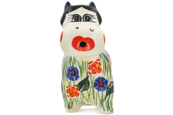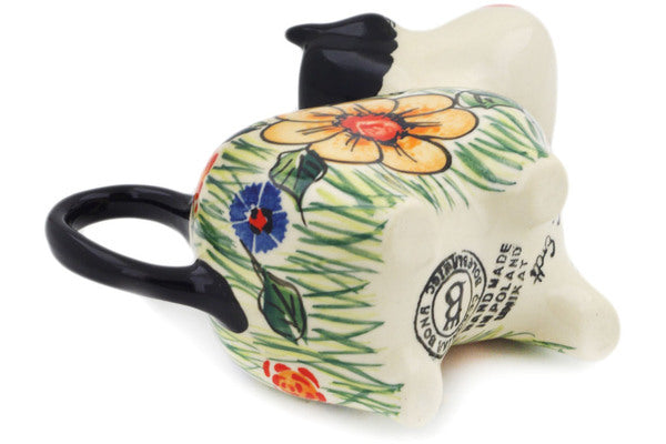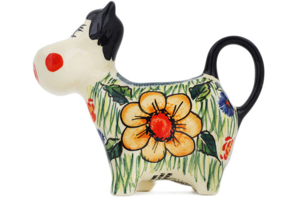 This Spring Garden 5 oz Cow Shaped Creamer was handmade and hand decorated in Boleslawiec, Poland by skilled artisans according to old traditional methods. This is a Polish pottery Signature Unikat, which means that it has been hand painted with both sponges and brushes and it is signed by the artist who painted it. Unikat pieces are the most intricate works of art. Larger Unikat items take hours of very careful work to finish. This Polish stoneware is microwave, dishwasher, freezer, and oven safe up to 480°F. It does not contain lead or cadmium. It is part of the Spring Garden Collection.