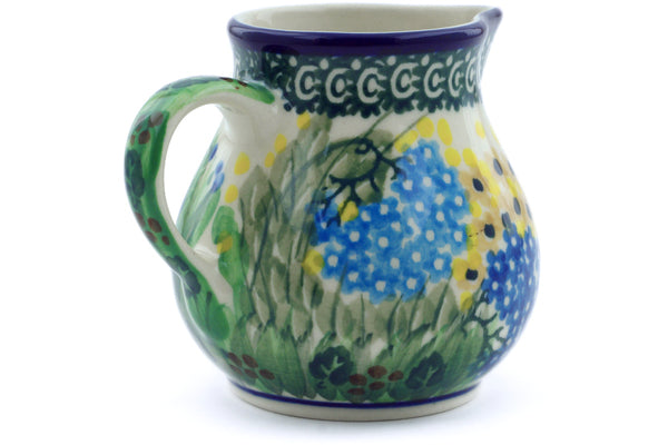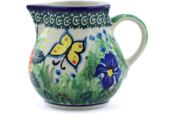 This Spring Garden 7 oz Creamer was handmade and hand decorated in Boleslawiec, Poland by skilled artisans according to old traditional methods. This is a Polish pottery Signature Unikat, which means that it has been hand painted with both sponges and brushes and it is signed by the artist who painted it. Unikat pieces are the most intricate works of art. Larger Unikat items take hours of very careful work to finish. This Polish stoneware is microwave, dishwasher, freezer, and oven safe up to 480°F. It does not contain lead or cadmium. It is part of the Spring Garden Collection.