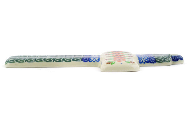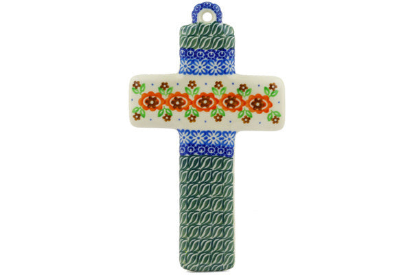 This Peach Daisy 8" Cross was handmade and hand decorated in Boleslawiec, Poland by skilled artisans according to old traditional methods. This Polish stoneware is microwave, dishwasher, freezer, and oven safe up to 480°F. It does not contain lead or cadmium. It is part of the Peach Daisy Collection.