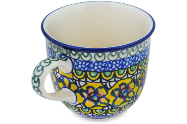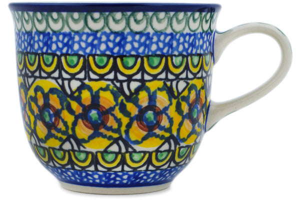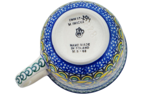 This Brilliant In Blue 6 oz Cup was handmade and hand decorated in Boleslawiec, Poland by skilled artisans according to old traditional methods. This is a Polish pottery Signature Unikat, which means that it has been hand painted with both sponges and brushes and it is signed by the artist who painted it. Unikat pieces are the most intricate works of art. Larger Unikat items take hours of very careful work to finish. This Polish stoneware is microwave, dishwasher, freezer, and oven safe up to 480°F. It does not contain lead or cadmium. It is part of the Brilliant In Blue Collection.