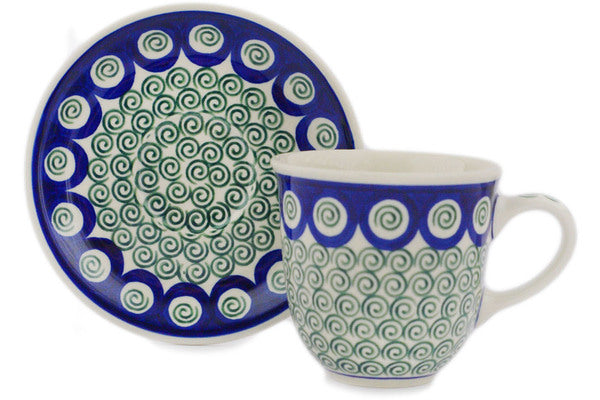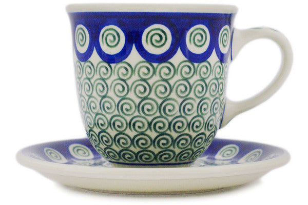 Cup with Saucer 10 oz Green Peacock Swirl Theme