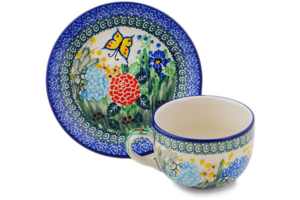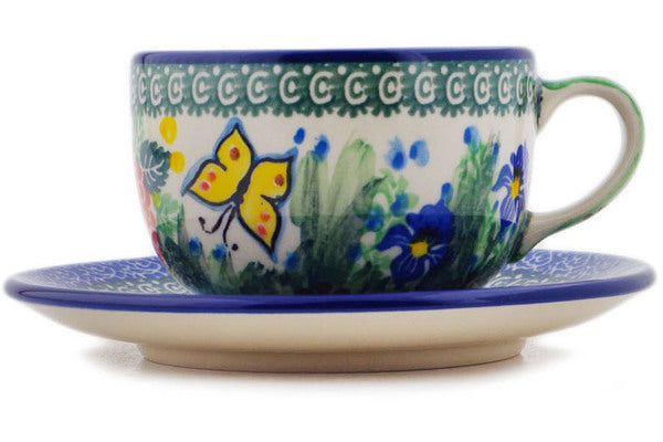 Cup with Saucer 9 oz Spring Garden Theme UNIKAT