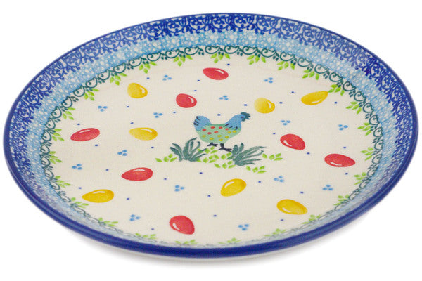 This Egg-celent 8" Dessert Plate was handmade and hand decorated in Boleslawiec, Poland by skilled artisans according to old traditional methods. This Polish stoneware is microwave, dishwasher, freezer, and oven safe up to 480°F. It does not contain lead or cadmium. It is part of the Egg-celent Collection.