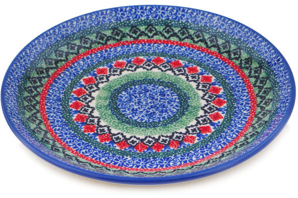 This Moving Mosaic 8" Dessert Plate was handmade and hand decorated in Boleslawiec, Poland by skilled artisans according to old traditional methods. This is a Polish pottery Signature Unikat, which means that it has been hand painted with both sponges and brushes and it is signed by the artist who painted it. Unikat pieces are the most intricate works of art. Larger Unikat items take hours of very careful work to finish. This Polish stoneware is microwave, dishwasher, freezer, and oven safe up to 480°F. It does not contain lead or cadmium. It is part of the Moving Mosaic Collection.
