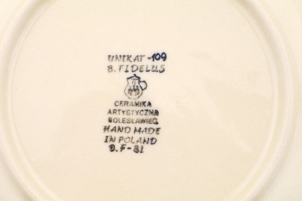 This Raining Umbrellas 8" Dessert Plate was handmade and hand decorated in Boleslawiec, Poland by skilled artisans according to old traditional methods. This is a Polish pottery Signature Unikat, which means that it has been hand painted with both sponges and brushes and it is signed by the artist who painted it. Unikat pieces are the most intricate works of art. Larger Unikat items take hours of very careful work to finish. This Polish stoneware is microwave, dishwasher, freezer, and oven safe up to 480°F. It does not contain lead or cadmium. It is part of the Raining Umbrellas Collection.