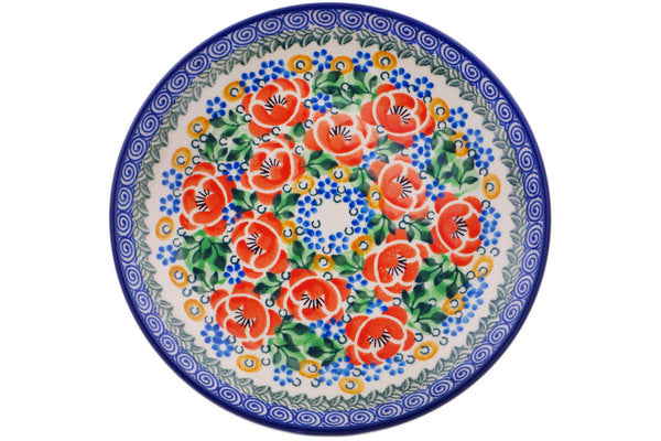 Dessert Plate 8" Red Poppy Burst Theme UNIKAT
