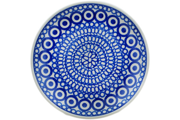 This Royal Peacock Eyes 8" Dessert Plate was handmade and hand decorated in Boleslawiec, Poland by skilled artisans according to old traditional methods. This Polish stoneware is microwave, dishwasher, freezer, and oven safe up to 480°F. It does not contain lead or cadmium. It is part of the Royal Peacock Eyes Collection.