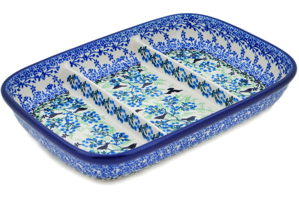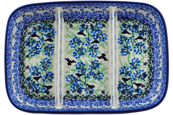 Divided Dish 10" Black Bird Fly Theme UNIKAT