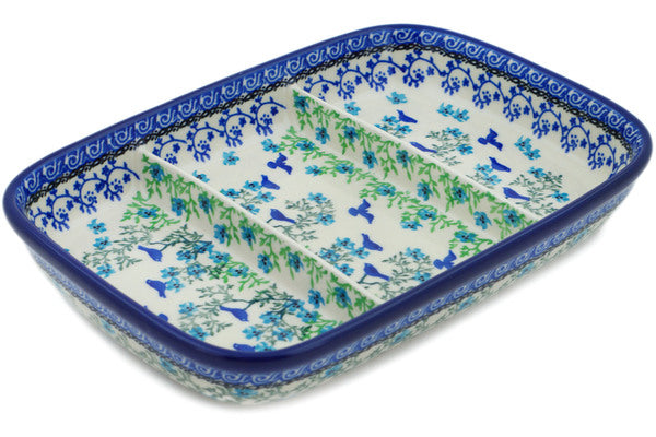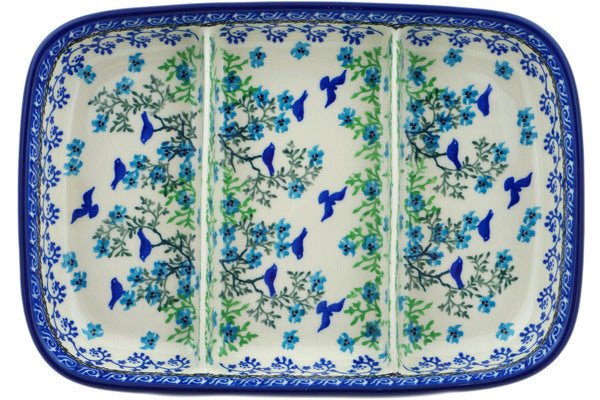 Divided Dish 10" Blue Bird Flying Theme UNIKAT