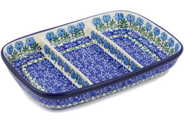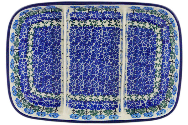 Divided Dish 10" Blue Rosette Wreath Theme