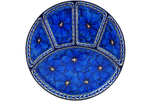 Divided Dish 10" Cobalt Poppies Theme UNIKAT