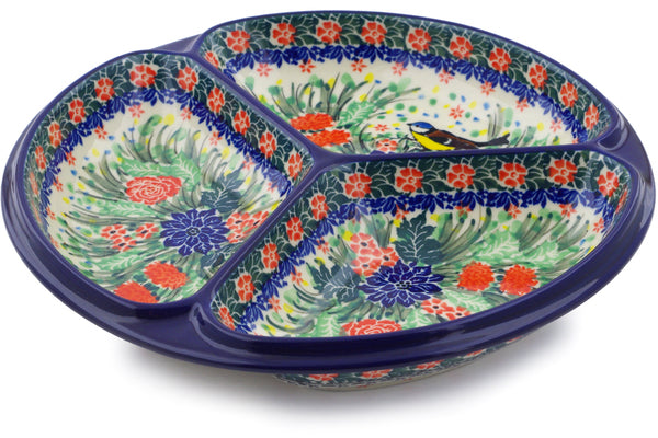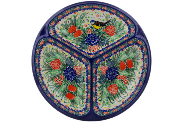 Divided Dish 10" Garden Bird Theme UNIKAT