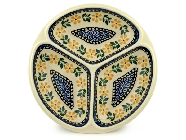 Divided Dish 10" Yellow Daisy Swirls Theme