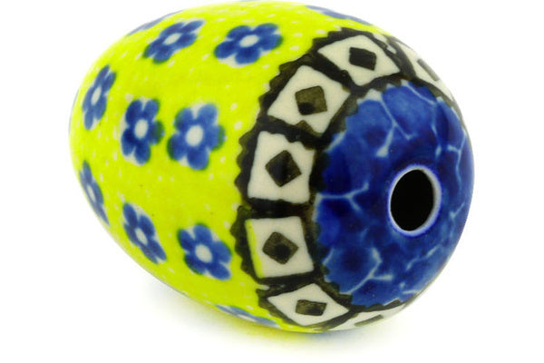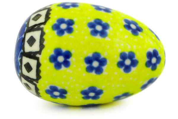 This Sunburst Daisies 2" Egg Figurine was handmade and hand decorated in Boleslawiec, Poland by skilled artisans according to old traditional methods. This Polish stoneware is microwave, dishwasher, freezer, and oven safe up to 480°F. It does not contain lead or cadmium. It is part of the Sunburst Daisies Collection.