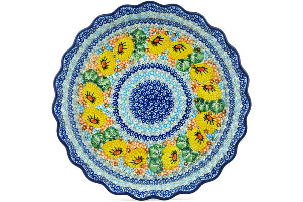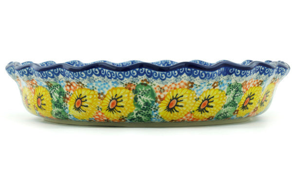 Fluted Pie Dish 10" Enchanted Spring Theme UNIKAT
