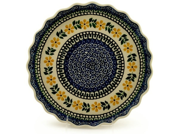 Fluted Pie Dish 10" Yellow Daisy Swirls Theme