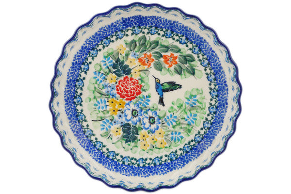 Fluted Pie Dish 8" Hummingbird Meadow Theme UNIKAT