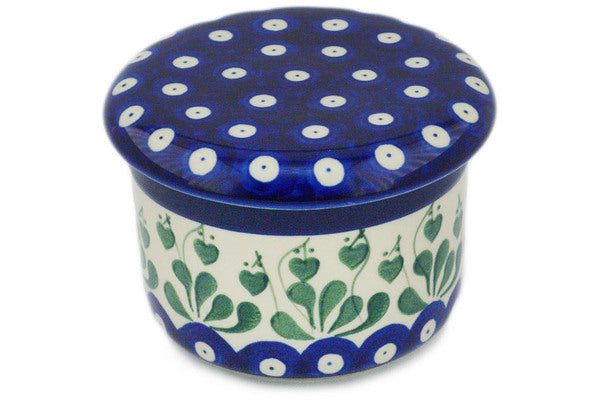 French Butter Dish 4" Bleeding Heart Peacock Theme