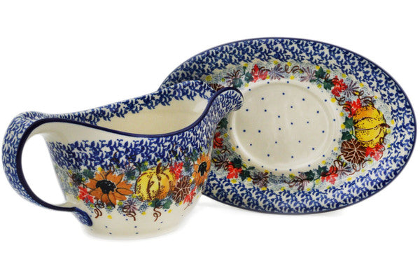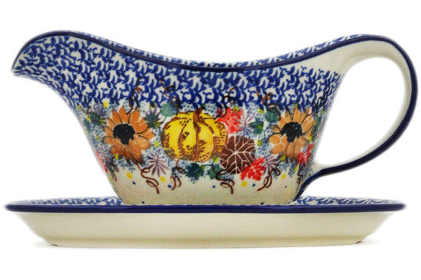 Gravy Boat with Saucer 20 oz Autumn Falling Leaves Theme UNIKAT
