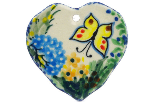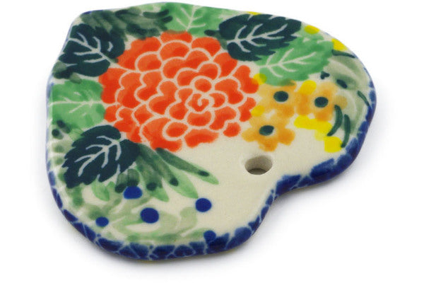 This Spring Garden 2" Heart Pendant was handmade and hand decorated in Boleslawiec, Poland by skilled artisans according to old traditional methods. This is a Polish pottery Signature Unikat, which means that it has been hand painted with both sponges and brushes and it is signed by the artist who painted it. Unikat pieces are the most intricate works of art. Larger Unikat items take hours of very careful work to finish. This Polish stoneware is microwave, dishwasher, freezer, and oven safe up to 480°F. It does not contain lead or cadmium. It is part of the Spring Garden Collection.