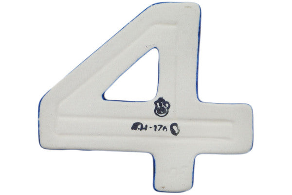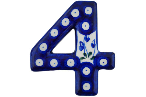 This Bleeding Heart Peacock 4-inch House Number FOUR (4) was handmade and hand decorated in Boleslawiec, Poland by skilled artisans according to old traditional methods. This Polish stoneware is microwave, dishwasher, freezer, and oven safe up to 480°F. It does not contain lead or cadmium. It is part of the Bleeding Heart Peacock Collection.