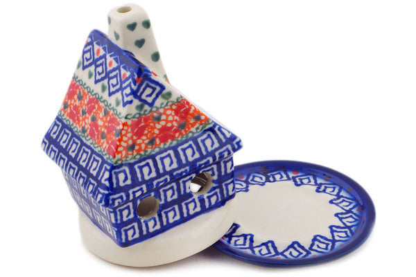 House Shaped Candle Holder 5" Grecian Fire Tulips Theme
