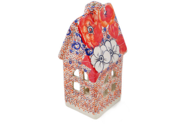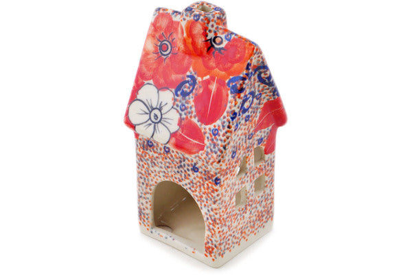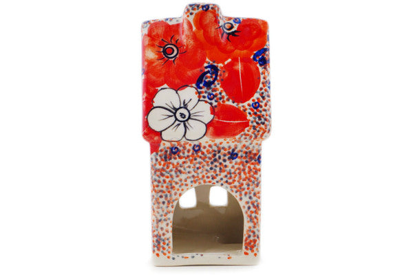 House Shaped Candle Holder 6" Poppy Passion Theme UNIKAT